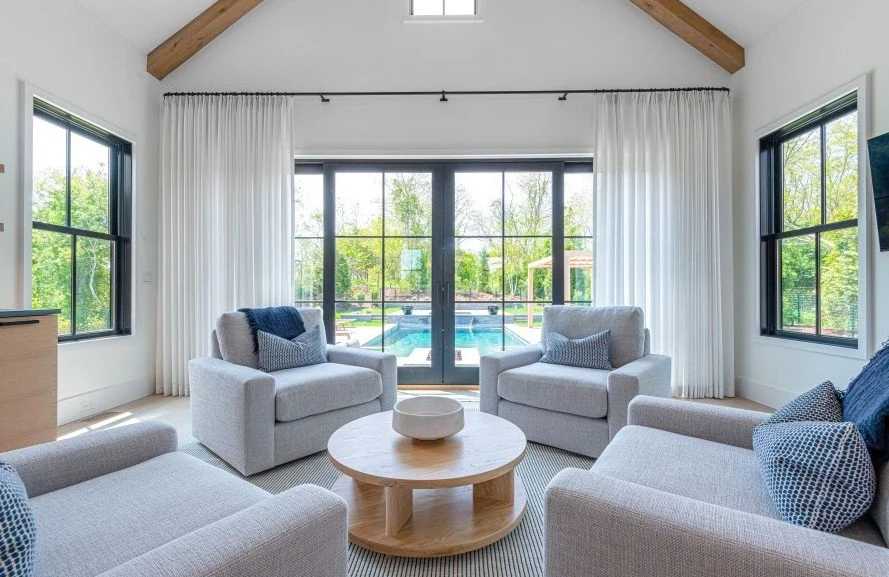 Main: 4,640 sq. ft. + 2,300 sq. ft. of unfinished basement | Cottage: 1,310 sq. ft. Garage w/Gym + Studio / 7 bedrooms / 8 Bathrooms. Includes oversized pool, pool pavilion, large lawn, and outdoor entertainment areas.
